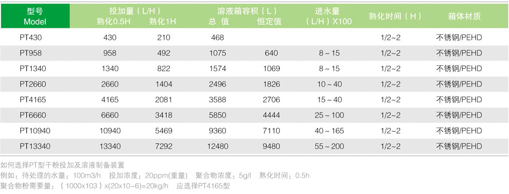 PT型干粉投加及溶液制備裝備(Poly Tont)是連續(xù)制備和投加聚合物溶液的交鑰匙自動化機器。其制備的原料可以是干粉藥劑,也可以是液態(tài)化學(xué)劑。它連續(xù)而高效地完成聚合物的化合和混合,從而得到均質(zhì)的有活性的聚合物溶液。該裝置可廣泛用于市政水處理及污水處理行業(yè)。